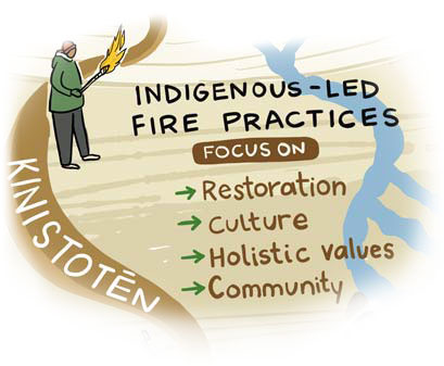 So, for Indigenous-led uses of fire on the land, kinisitotēn is information on and knowledge about how to set a fire, the importance of the fire, its holistic values and other considerations.